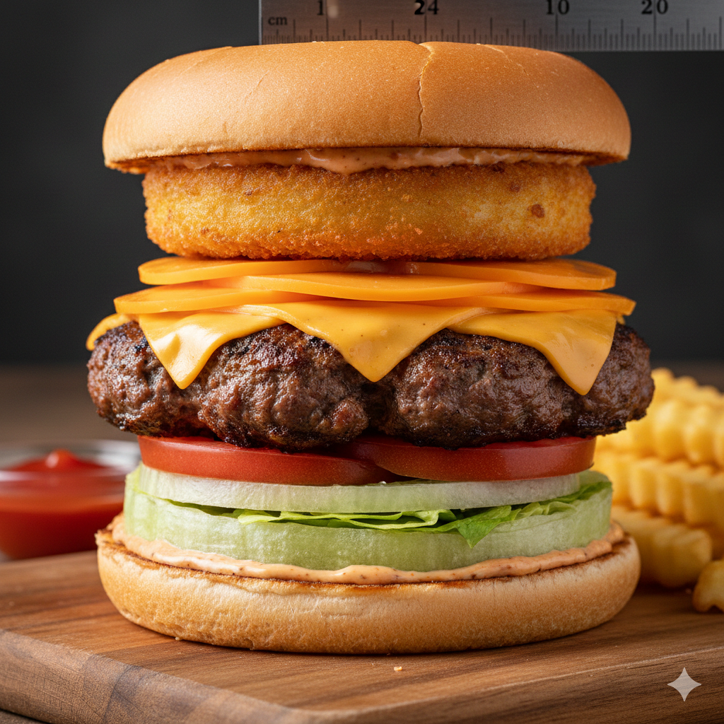 And a round slice (not a leaf, not shredded) of iceburg lettuce of the same height.